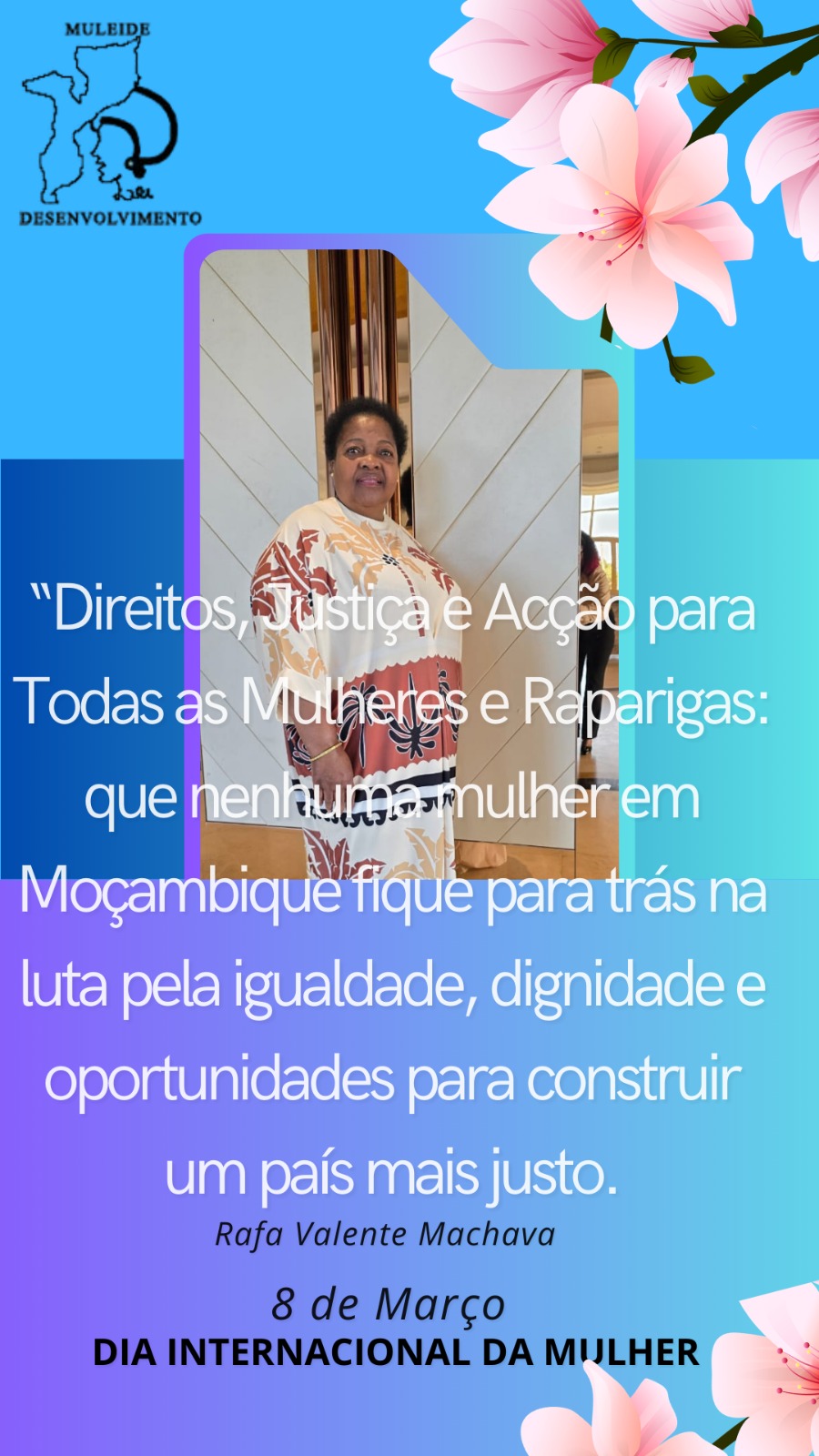 “Direitos, Justiça e Acção para Todas as Mulheres e Raparigas: que nenhuma mulher em Moçambique fique para trás na luta pela igualdade, dignidade e oportunidades para construir um país mais justo.”